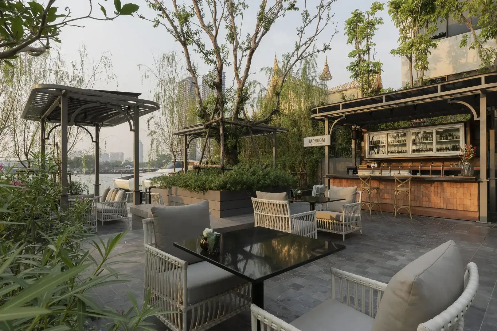Taproom by the River is a lively craft beer bar boasting 26 rotating taps and over 100 bottled options from around the world. Located on the terrace, it offers a welcoming spot for both seasoned beer lovers and curious newcomers to enjoy IPAs, stouts, and sours amid a casual riverside atmosphere, open evenings with striking river views.