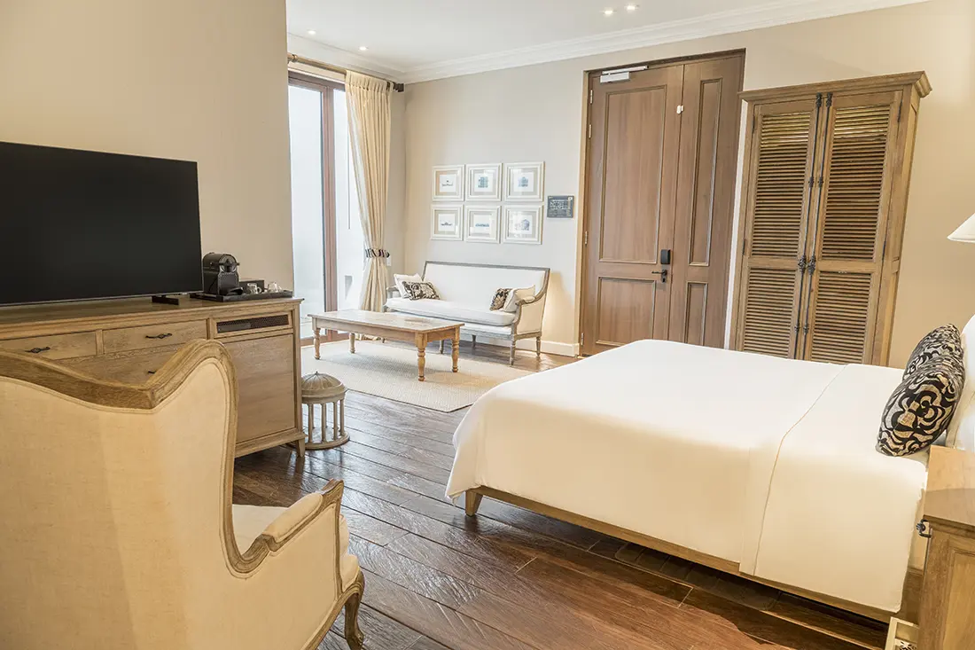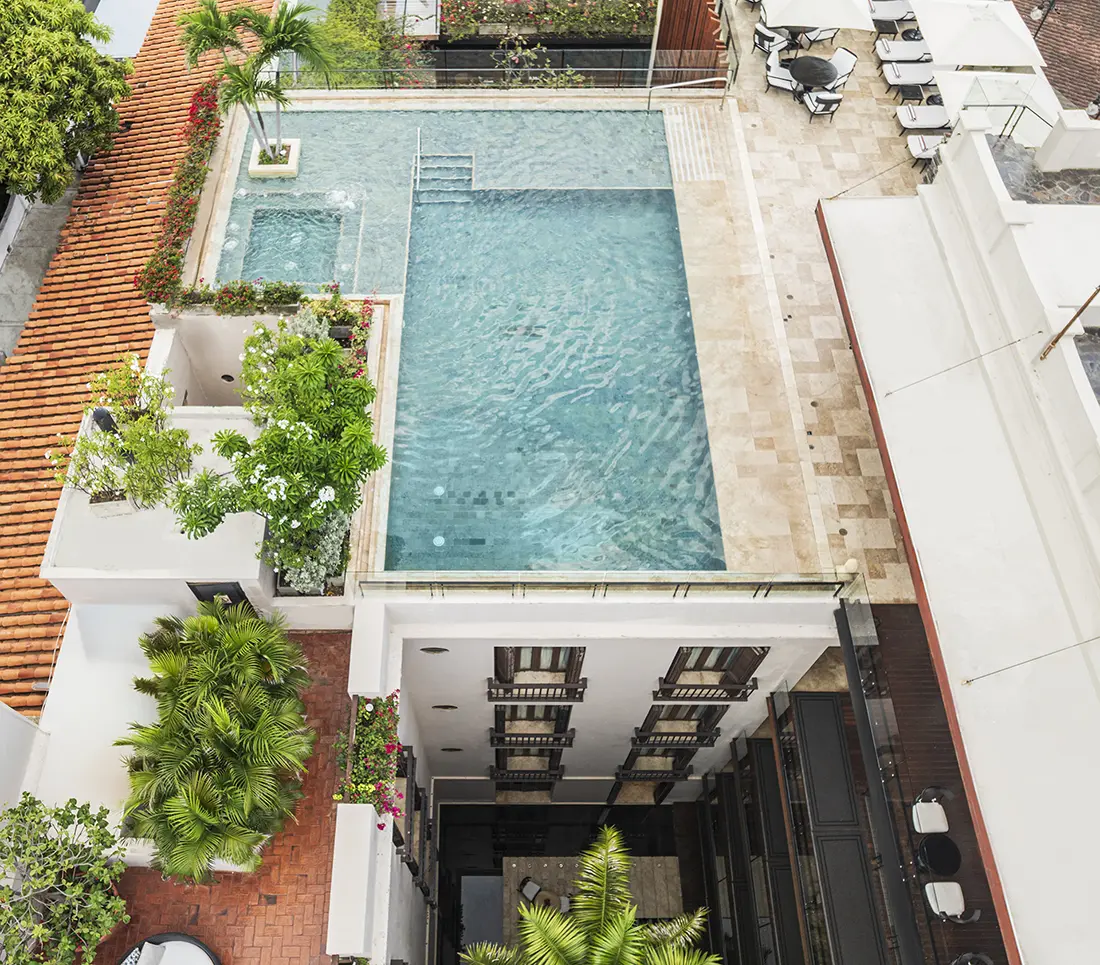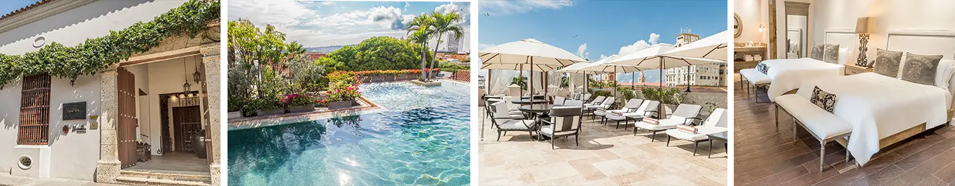Nestled within Cartagena’s enchanting walled city, Bastion Luxury Hotel masterfully combines colonial elegance with contemporary sophistication. Set in a meticulously restored colonial mansion, this boutique gem features 51 stylish rooms and suites, each outfitted with rich colonial-inspired accents, plush bedding, Smart TVs, Nespresso machines, and elegant travertine bathrooms. Guests can unwind in the serene courtyard, take in sweeping views from the rooftop pool, or indulge in innovative Colombian cuisine at the renowned El Gobernador restaurant. With added comforts like a cozy spa, fitness center, complimentary breakfast, and high-speed Wi-Fi, the hotel offers a polished retreat ideal for romantic getaways, family vacations, and business stays alike.